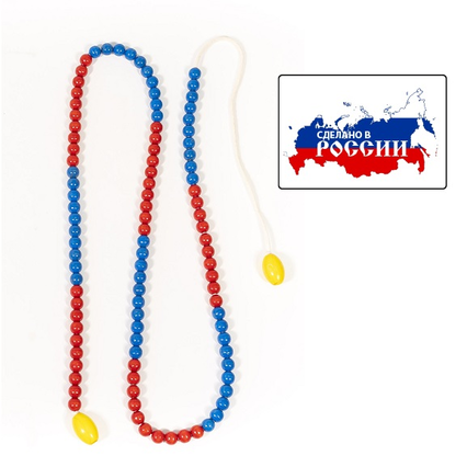 Деревянные бусы на прочной верёвке. Сто бусин, окрашенных десятками в синий и красный цвет попеременно. Полезны при изучении двузначных чисел. Удобны для демонстрации сложения, вычитания, деления с остатком, умножения на однозначное число. Подготавливают ребенка к идее числовой прямой. Имеются методические рекомендации для учителя (приобретаются отдельно). Для хранения бусы можно вешать на специальную планку (приобретается отдельно).
