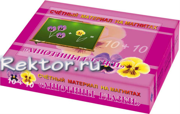 Комплект "Счетный материал на магнитах. Анютины глазки" предназначен для организации устного счета, сравнения групп предметов, схематической записи задач в начальных классах и подготовительных группах детских садов.