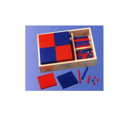В комплекте - красные и синие единичные кубики, палочки-пятерки и десятичные палочки, полусотенные и сотенные пластины, блоки-500 и куб-1000. Все детали хранятся в деревянном ящике.