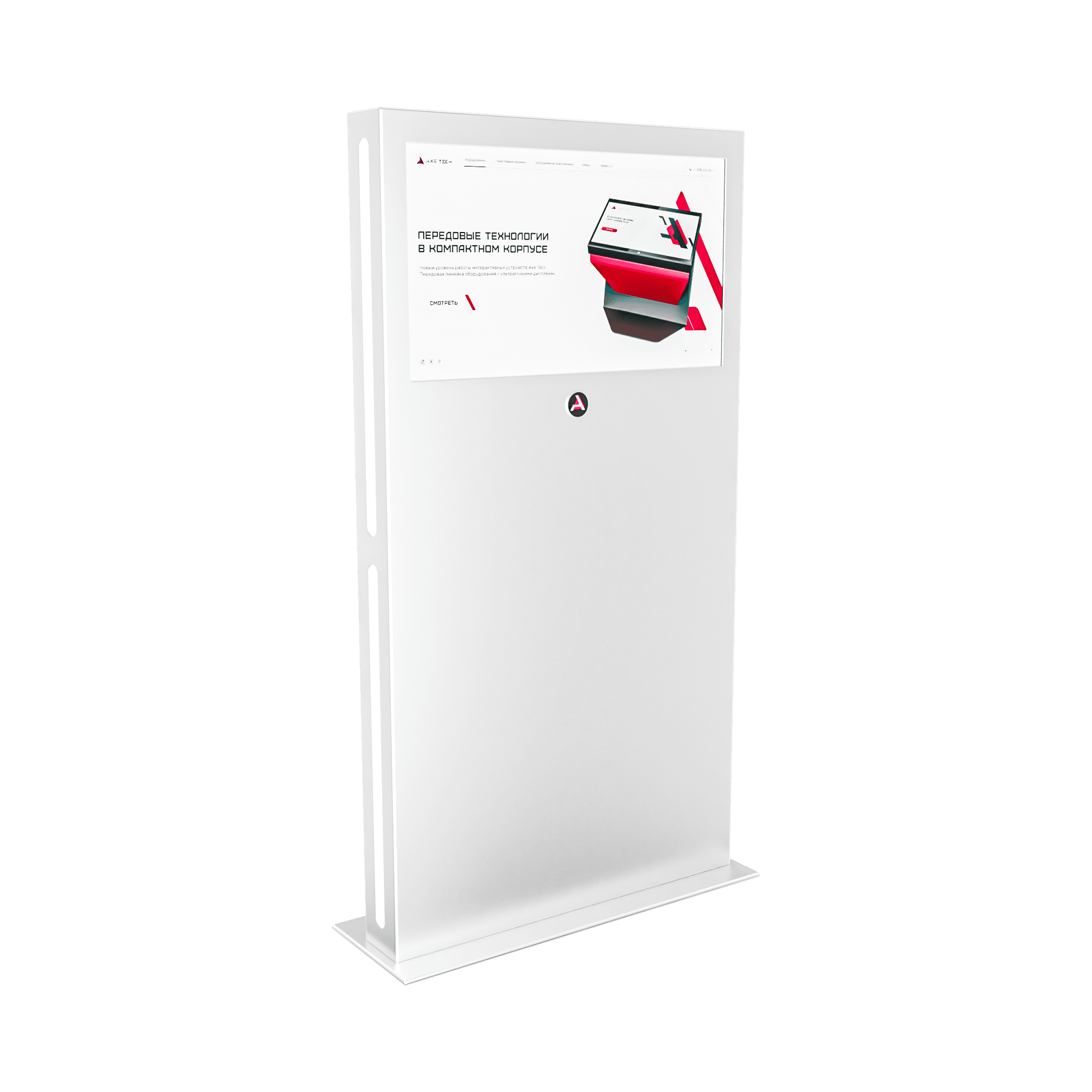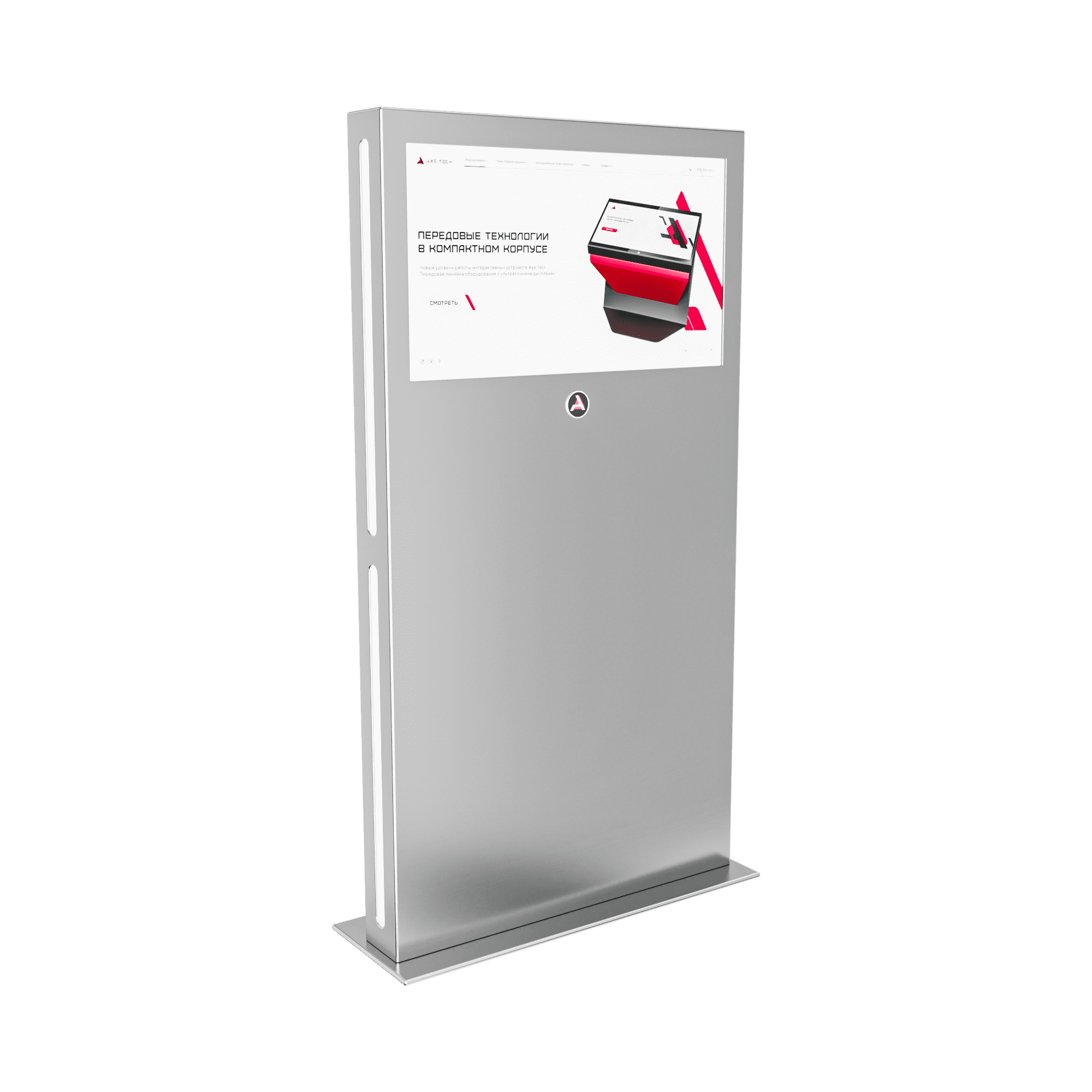 Киоск Noble оснащен дисплеем альбомной ориентации, который позволяет отобразить большой объем информации о товарах и услугах, мероприятиях, расписании специалистов, расположении корпусов, а также демонстрировать рекламный контент. Тонкий стальной корпус и минималистичный дизайн подойдут к любому интерьеру, а светодиодная боковая подсветка позволит увидеть все загруженные на интерактивный киоск материалы даже в самом темном помещении.
