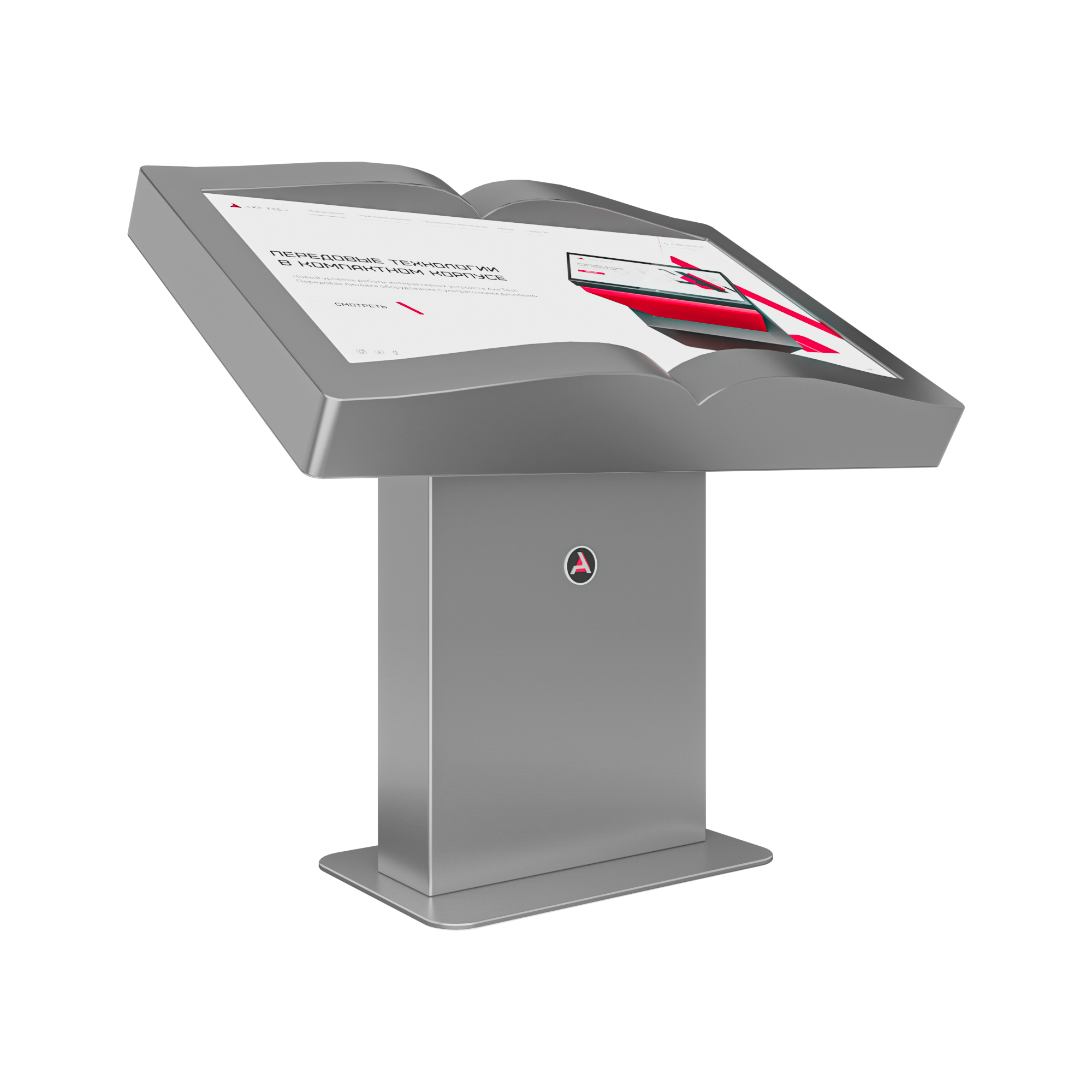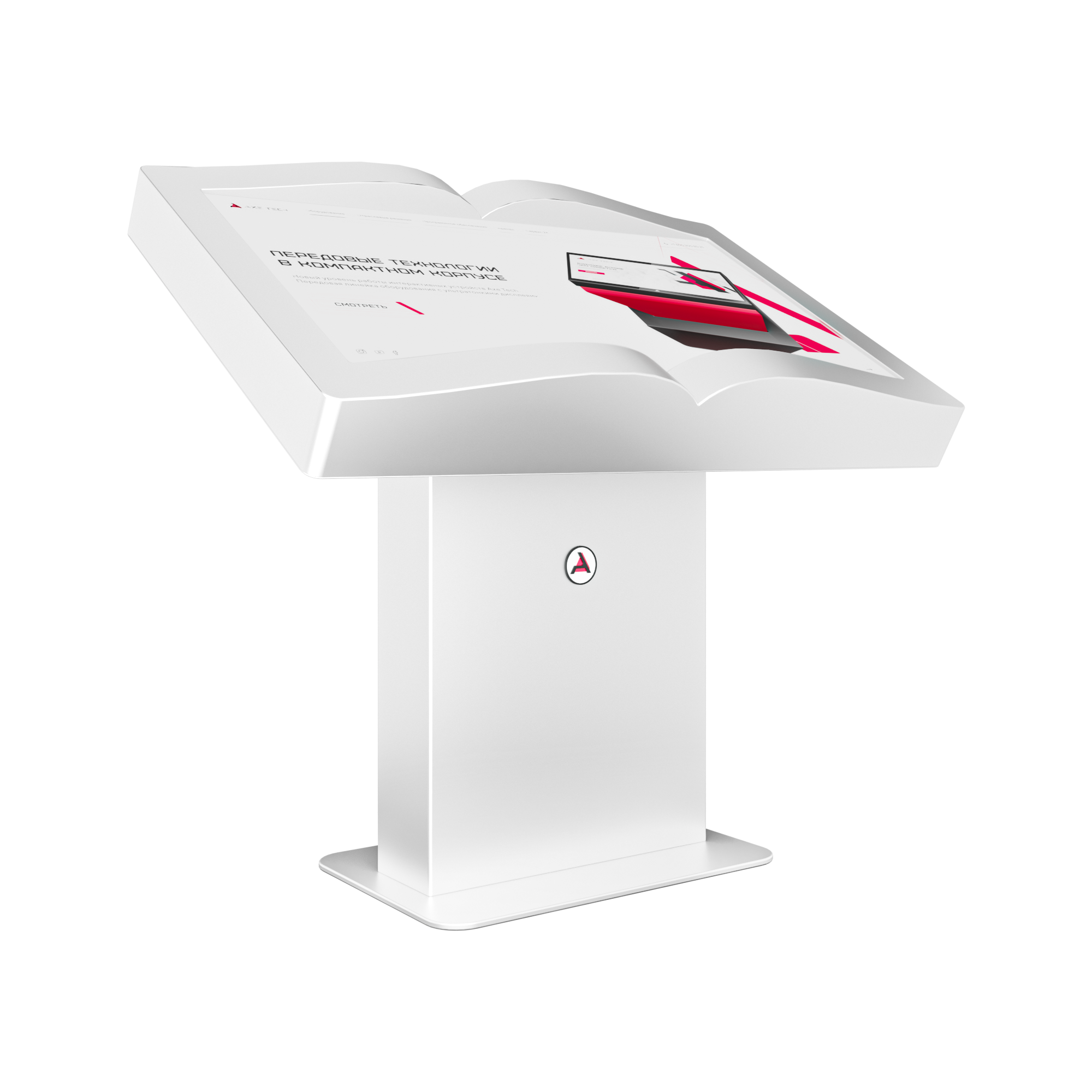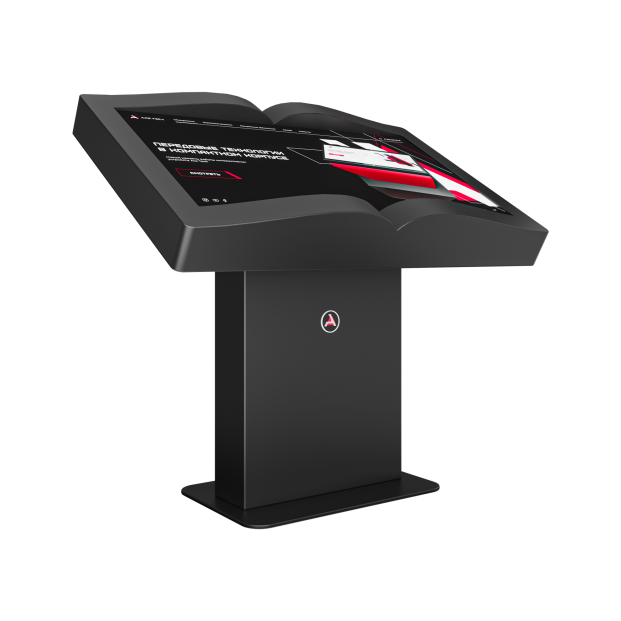 Интерактивный стол Book устройство, форм-фактор которого реализован в форме раскрытой книги. Механическая регулировка дисплея позволит настроить пользователям оптимальный угол для взаимодействия с программным обеспечением. Оборудование может быть дополнено информационным приложением или интерактивной книгой с эффектом пролистывания страниц.