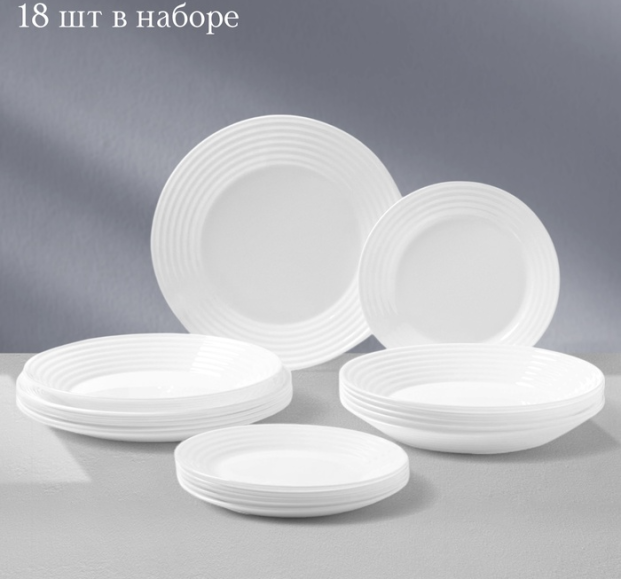 Сервиз столовый Luminarc HARENA, 18 предметов, d=25/23.5/19 см, стеклокерамика, белый, Франция
