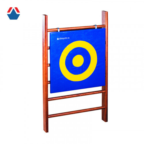 Имеет разметку из трех прицельных кругов, разного цвета, диамерами 50 см, 33 см и 15 см. Чехол щита сшивной.