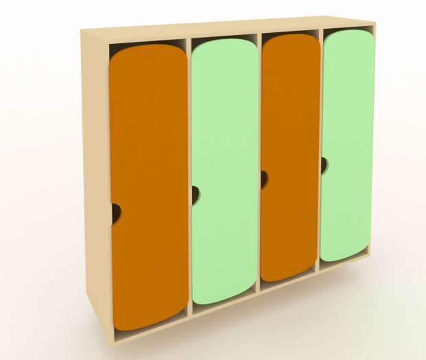 Шкаф для детской одежды. 4 секц оранжевый/зеленый