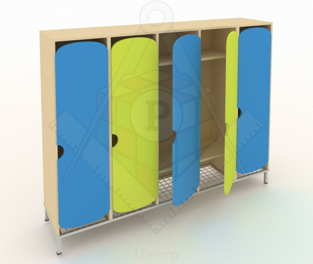 Шкаф для детской одежды МДФ на металлокаркасе с сеткой 5 секц синий/желтый