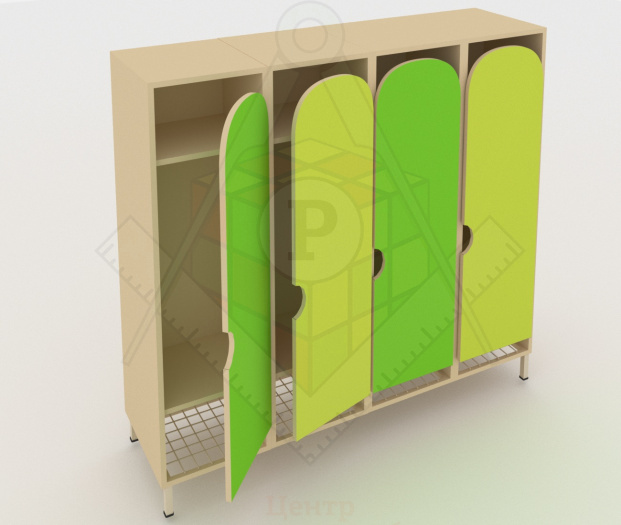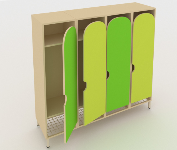 Шкаф для детской одежды на металокаркасе с сеткой, 4 секц лайм/зеленый
