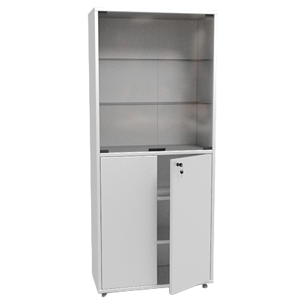 - дверцы оборудованы: металлическая – замком, стеклянная – магнитной защелкой