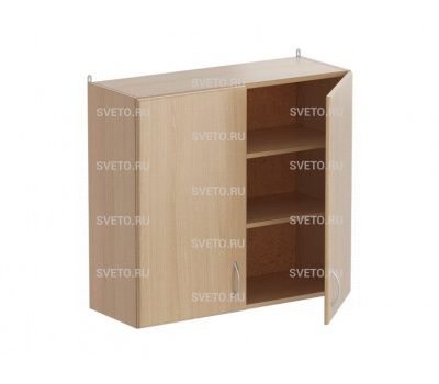 800х300х724 имеет две распашные дверки из МДФ.Шкаф навесной выполнен из ламинированной ДСП 16 мм, кромка ПВХ толщиной 0,25- 0,5 мм.Задняя стенка шкафа выполнена из ДВП. Внутри шкафа установлены на полкодержателях две полки.