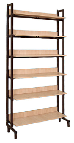 Выполнен на металлическом каркасе из трубы прямоугольного сечения 25х25 мм и уголков сечением 32х32 мм, каркас имеет цельносварную конструкцию, окрашен полимерным покрытием, стойким к химическим и механическим воздействиям, на свободных концах труб установлены заглушки из ударопрочных полимеров. Шкаф-стеллаж имеет шесть горизонтальных полок, изготовленных из ламинированной ДСП 16 мм, торцы окантованы кромкой ПВХ в тон ЛДСП. Предусмотрено крепление к стене.