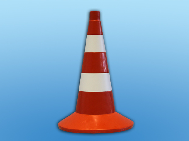 Сигнальный дорожный конус представляет собой техническое средство организации дорожного движения в форме конуса оранжевого цвета с площадкой у основания и двумя белыми полосами. Сигнальный дорожный конус предназначен для временного обозначения и ограждения участков дорог, применения на автодромах во время практической подготовки водителей транспортных средств, соревнованиях, спортивных мероприятиях и практических занятиях по правилам дорожного движения в образовательных учреждениях.