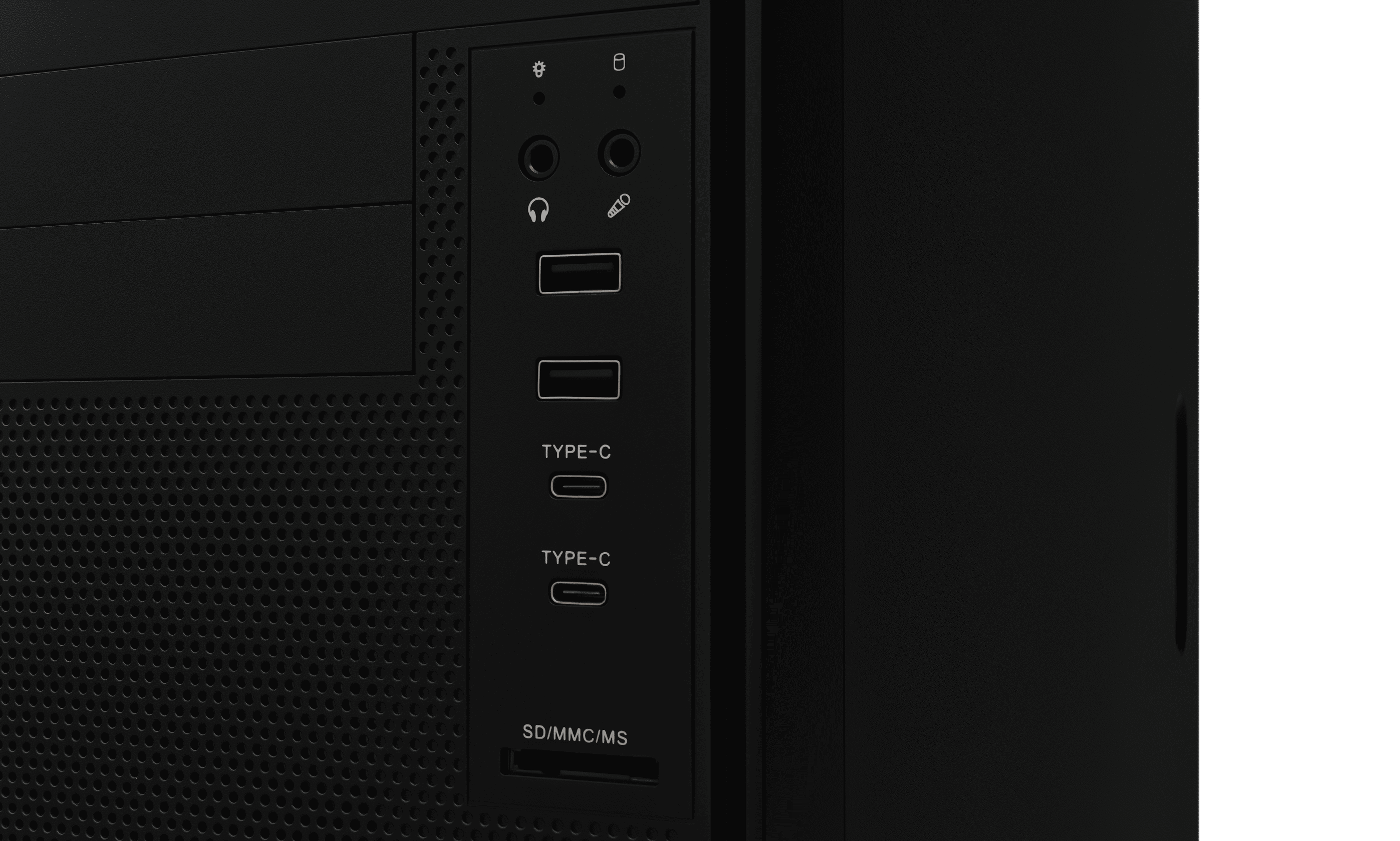 Порты ввода-вывода на передней панели: 2 x USB 3.2 Gen1 Type-C 2 x USB 2.0 Звуковые гнезда (2 шт.)