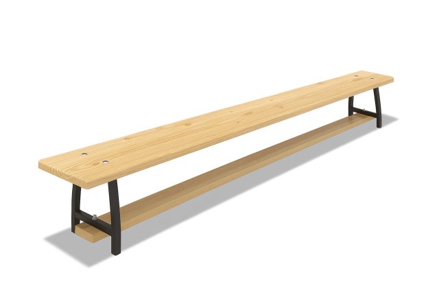 Сидение скамьи выполнено из клееного мебельного щита хвойных пород. Царга выполнена из массива сосны.