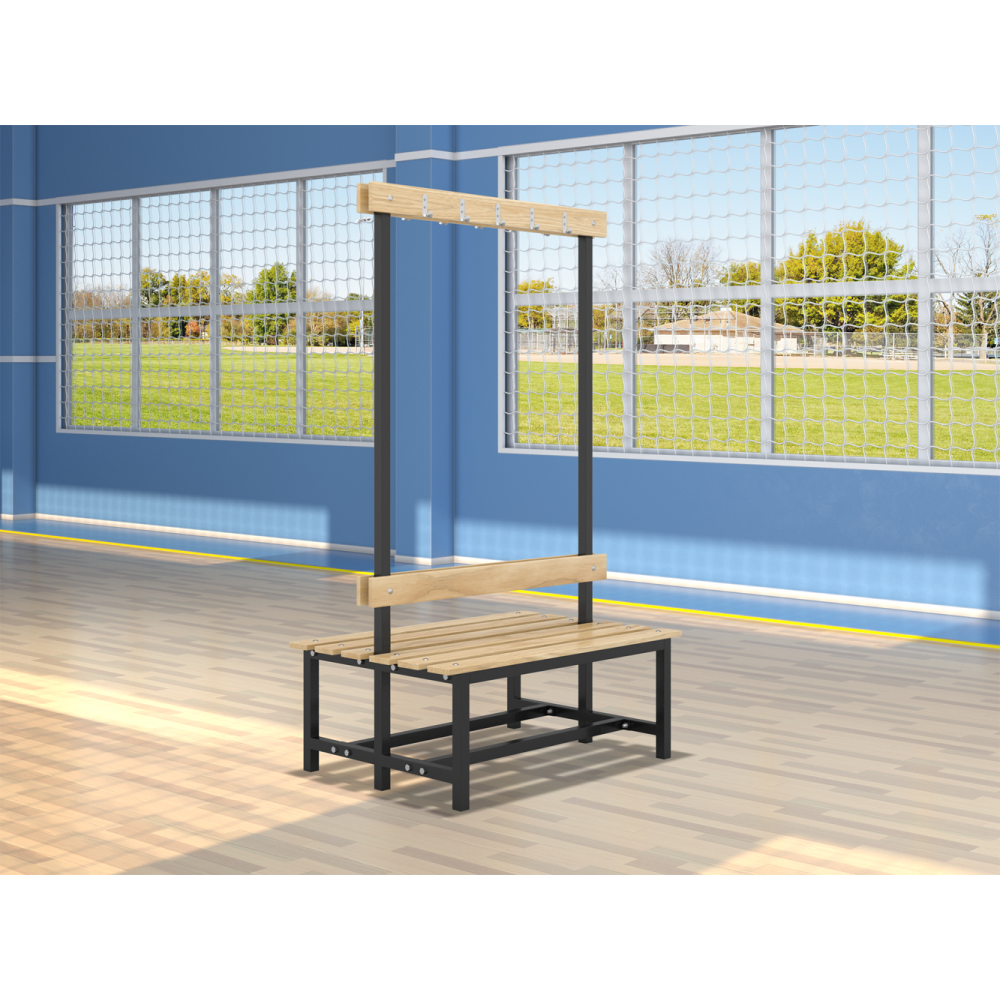 Скамейка с вешалкой для раздевалки двухсторонняя разборная (2000mm)