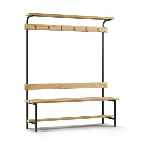 Скамейка с вешалкой для раздевалки с верхней полкой (L=1500) дерево
