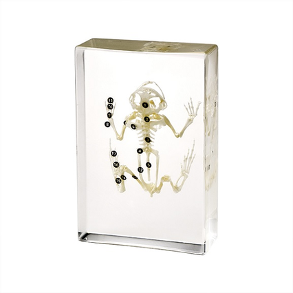 Демонстрационное учебное пособие представляет собой скелет бесхвостого земноводного (жабы) в пластиковом прозрачном блоке. Предназначено для изучения биологии в общеобразовательной школе.