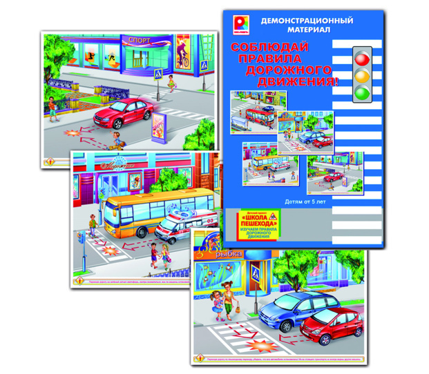 Демонстрационный материал состоит из 6 демонстрационных плакатов. Он научит маленьких пешеходов правильно вести себя на дороге.