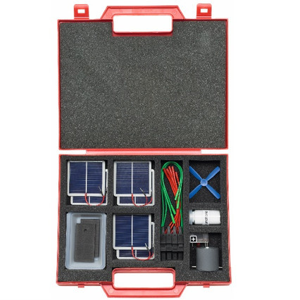 В наборе (для 1 рабочей группы или для демонстрации)*: 6 солнечных элементов, электромотор с пропеллером, ванна для электролиза, угольные электроды, светодиод, хлорид натрия, соединительные провода, аксессуары.