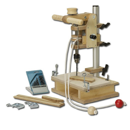 Изготовленный из бука сверлильный станок прост и нагляден в использовании и максимально отвечает требованиям безопасности. При работе на станке ребенок учится координировать движения каждой из рук. Одна рука тянет – другая уступает.