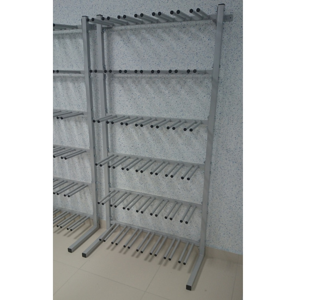или роликов - по три пары в один ряд. Стеллаж для хранения коньков и роликов