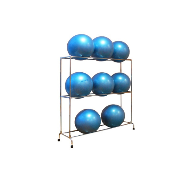 Стеллаж предназначен для хранения 9 гимнастических мячей. Стеллаж разборный, изготовлен из хромированной трубы диаметром 25 мм. Для удобства перемещения снабжен колесами.