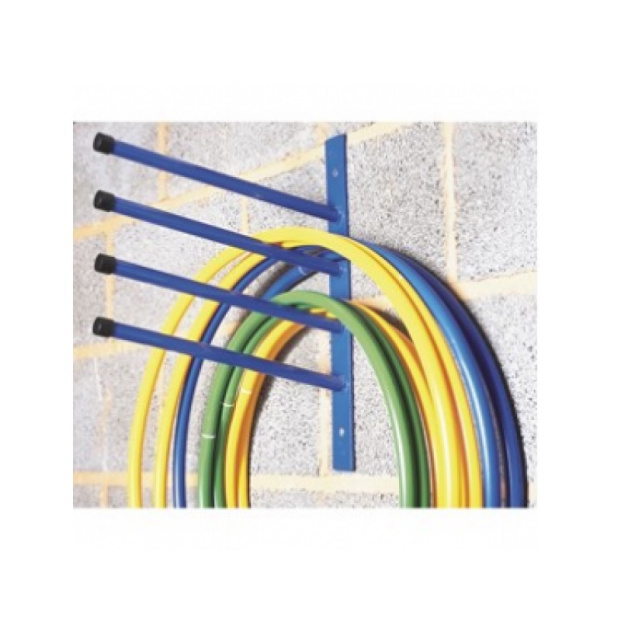 Стеллаж с креплением к стене экономит полезную площадь спортивного или игрового зала, позволяя разместить обручи компактно и мобильно.