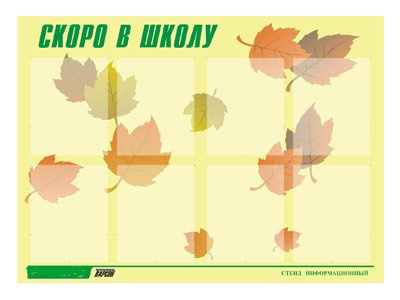 Стенд инф. для ДОУ Скоро в школу (80х110см, 8 карм., алюм. проф.)