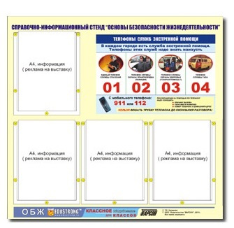 Стенд информационный Основы безопасности жизнедеятельности (80х75, 4 кармана)