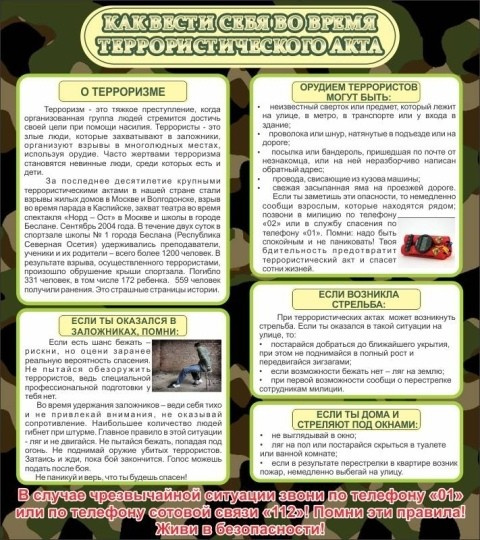Стенд Как вести себя во время теракта 80*90 см