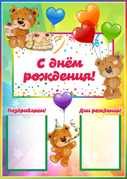 - Стенд С ДНЕМ РОЖДЕНИЯ! для группы МИШУТКИ предназначен для оформления кабинета в детском саду.