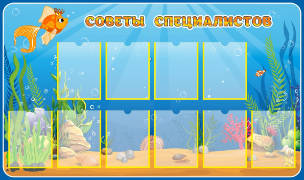 - Стенд СОВЕТЫ СПЕЦИАЛИСТОВ для группы ЗОЛОТАЯ РЫБК предназначен для информационно-справочных материалов для родителей в детском саду.
