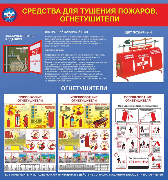 Стенд «Средства для тушения пожаров, огнетушители», 70х75 см