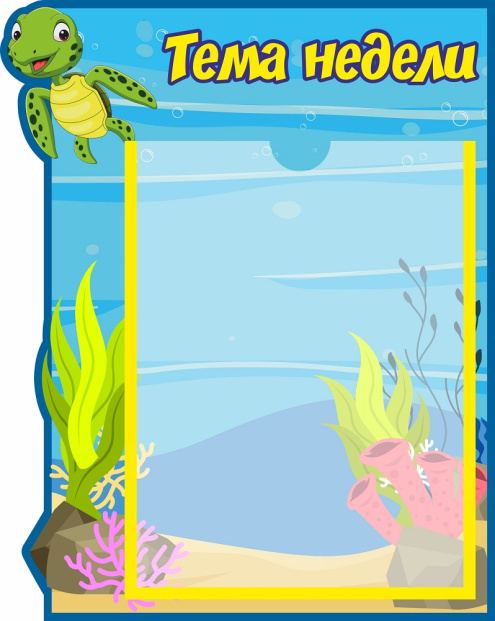 - Стенд ТЕМА НЕДЕЛИ для группы МОРСКАЯ предназначен для информационно-справочных материалов для родителей в детском саду.