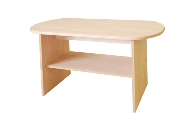 Выполнен из ламинированной ДСП 16 мм, торцы обрамлены кантом ПВХ 2 мм. Внутри стола полка.