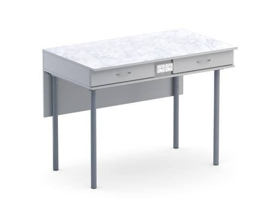 Рабочая поверхность столешницы облицована стойким к химическим воздействиям пластиком, торцы обрамлены кромкой ПВХ 2 мм.