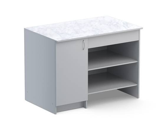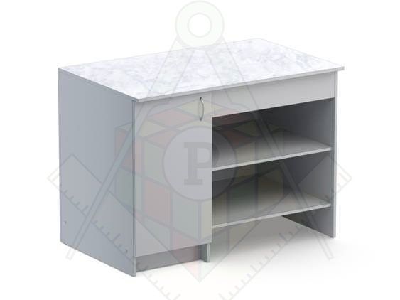 Стол демонстрационный корпусной выполнен из ламинированной ДСП 16 мм, столешница облицована стойким к химическим воздействиям пластиком, торцы обрамлены кантом ПВХ 2мм. Стол демонстрационный имеет 2 открытые полки, а также нишу, закрытую дверкой. Комплектуется двумя электрическими розетками 36…42V. Вертикальные стенки стола имеют полимерные подпятники, предотвращающие повреждение поверхности напольных покрытий.