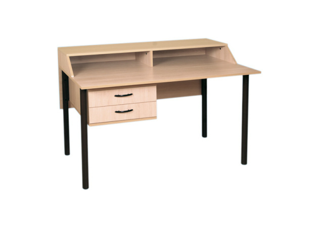 Шифр: СТДПкр(т)Размеры: 1200х700х900 ммЦвет: Бук Натур.Стол демонстрационный приставной изготавливается на металлическом каркасе круглого сечения ?40 мм, рама - из трубы прямоугольного сечения. Каркас имеет сварную конструкцию с полимерным покрытием, стойким к химическим и механическим воздействиям, на свободных концах труб установлены заглушки из ударопрочных полимеров с резьбой под регулируемые опоры, которые находятся в комплекте и позволяют компенсировать неровности пола. Столешница, передняя панель, надстройка и два ящика, расположенные под столешницей и имеющие левое исполнение, выполнены из ламинированной ДСП 16 мм, рабочая поверхность надстройки облицована стойким к химическим воздействиям пластиком, торцы обрамлены кантом ПВХ 2 мм.