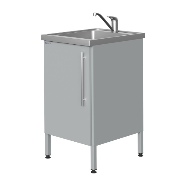 Одинарная цельнометаллическая. Габаритные размеры стола-мойки 500х600х900 мм. Каркас мойки изготовлен из металлической профильной трубы квадратного сечения 30х30х1,5 мм. Нерабочие поверхности изготовлены из металлического холоднокатаного листа толщиной 1 мм. Металл покрывается химически стойкой эпоксиполиэфирной порошковой краской отверждаемой в печи