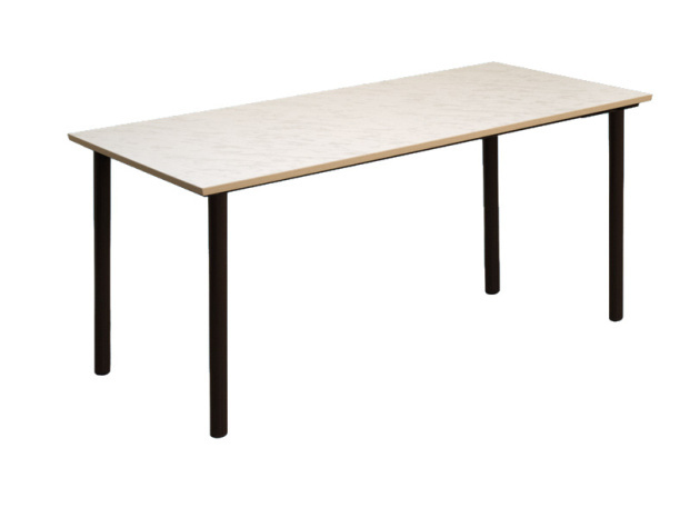 Стол изготавливается на металлическом каркасе прямоугольного сечения, покрытого стойкой к химическим и механическим воздействиям полимерно-порошковой краской, на свободных концах труб установлены заглушки из ударопрочных полимеров.
