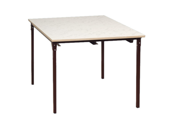 Стол изготавливается на металлическом каркасе прямоугольного сечения, покрытого стойкой к химическим и механическим воздействиям полимерно-порошковой краской, на свободных концах труб установлены заглушки из ударопрочных полимеров. Столешница выполнена из ДСП 16 мм, облицована пластиковым покрытием, торцы обрамлены кантом ПВХ 2 мм. Под столешницей предусмотрены металлические кронштейны для подвешивания табуретов.