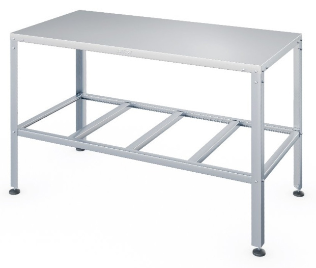 -Каркас выполнениз оцинкованной стали толщиной 1,2 мм, столешница - из нержавеющей стали AISI 430 толщиной 0,8 мм, ножки - из нержавеющей стали, опора ножек - из пластика.