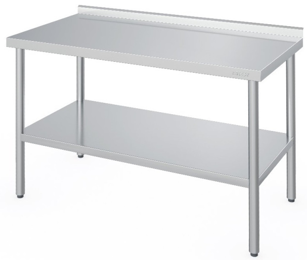 - Сплошная полка и столешница выполнены из нержавеющей стали AISI 430 толщиной 0,8 мм, каркас - из трубы диаметром 40 мм из нержавеющей стали AISI 201, ножки - из нержавеющей стали, опора ножек - из пластика.