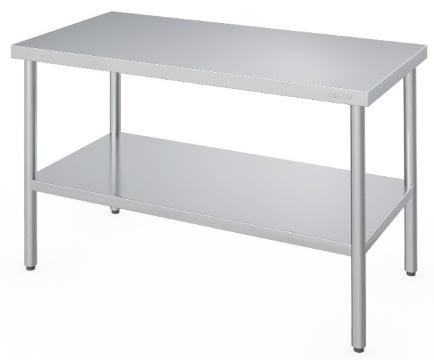 - Столешница стола изготовлена из нержавеющей стали, с внутренней стороны усилена листом ламинированной древесностружечной плиты, что увеличивает прочность и исключает прогиб столешницы.