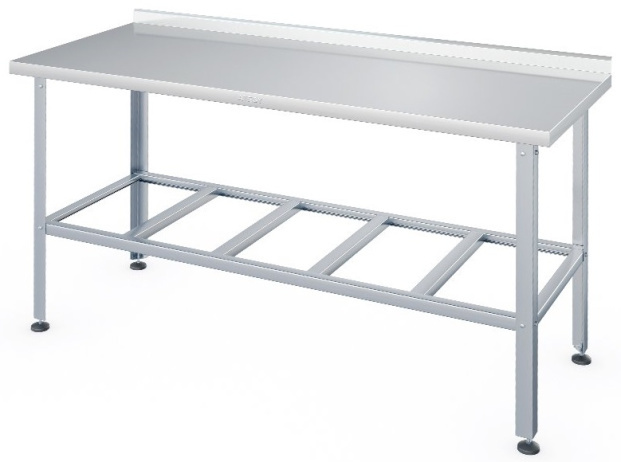 Стол разделочный ATESY СР-С-1-1500.800-02 с бортом широко применяется в различных производственных цехах предприятий общественного питания, супермаркетах, комбинатах пищевой промышленности для разделывания и обработки пищевых продуктов, а также в качестве вспомогательной поверхности для кухонного оборудования. - Все кромки столешницы и элементов каркаса имеют подгиб (фальцовку), что полностью исключает получение травмы персоналом при сборке, эксплуатации и санитарной обработке стола. - Углы столешницы заварены и зашлифованы, что обеспечивает гигиеническую безопасность и облегчает санитарную обработку столешницы. - Полка-решётка, и столешница выполнены из нержавеющей стали AISI 430 толщиной 0,8 мм, каркас - из трубы диаметром 40 мм из нержавеющей стали AISI 201, ножки - из нержавеющей стали, опора ножек - из пластика. 1500х800х870мм, столешница - AISI430, каркас - оцинк.сталь, полка-решетка, 1 борт 50мм.