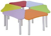 Возможность заниматься творчеством шести детей одновременно за одним составным столом или каждому ребенку за индивидуальным столиком-лепестком;