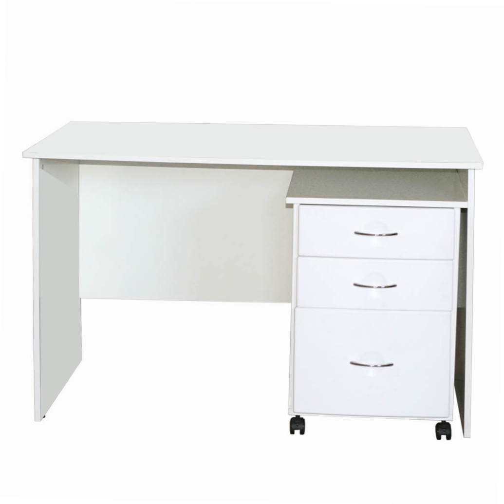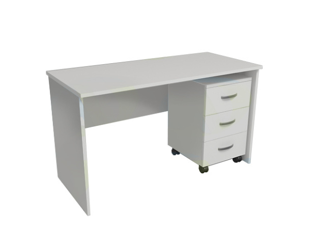 - Стол оборудован одной подкатной тумбой с тремя выдвижными ящиками.