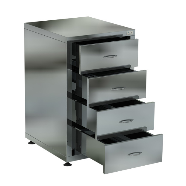 - Стол-тумба полностью изготовлена из нержавеющей стали aisi 430, что позволяет их применять в различных цехах.