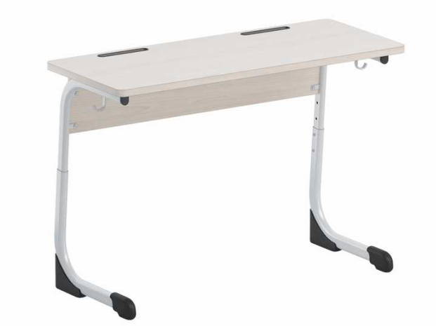 Стол ученический одноместный плоскоовальная труба, регулируемый по высоте изготовлен. Торцы столешницы обработаны противоударной кромкой ПВХ толщиной 2 мм. Металлокаркас стола изготовлен из трубы плоскоовального сечения, снабжен 2-мя крючками для портфелей и окрашен износостойкой порошковой краской. Опорные концы труб каркаса закрыты черными пластиковыми протекторами.