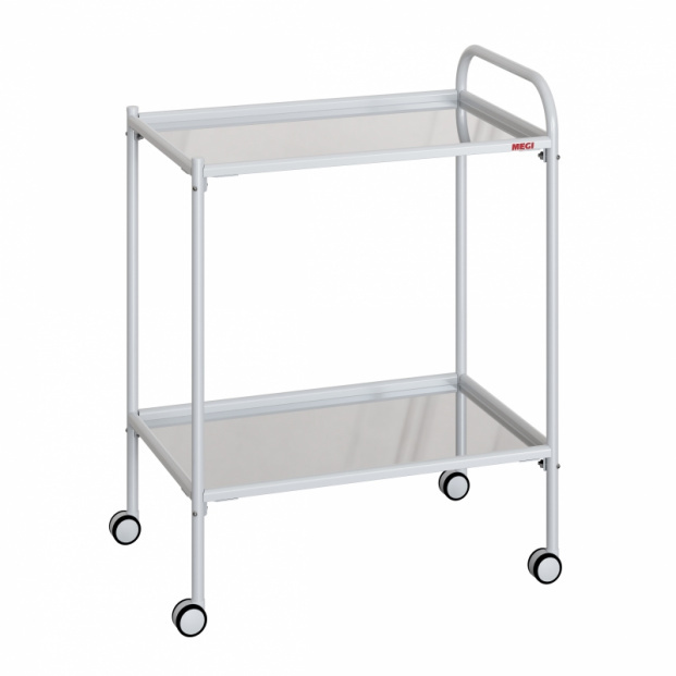 - Столик имеет две полки. Полки столика изготовлены из нержавеющей стали.