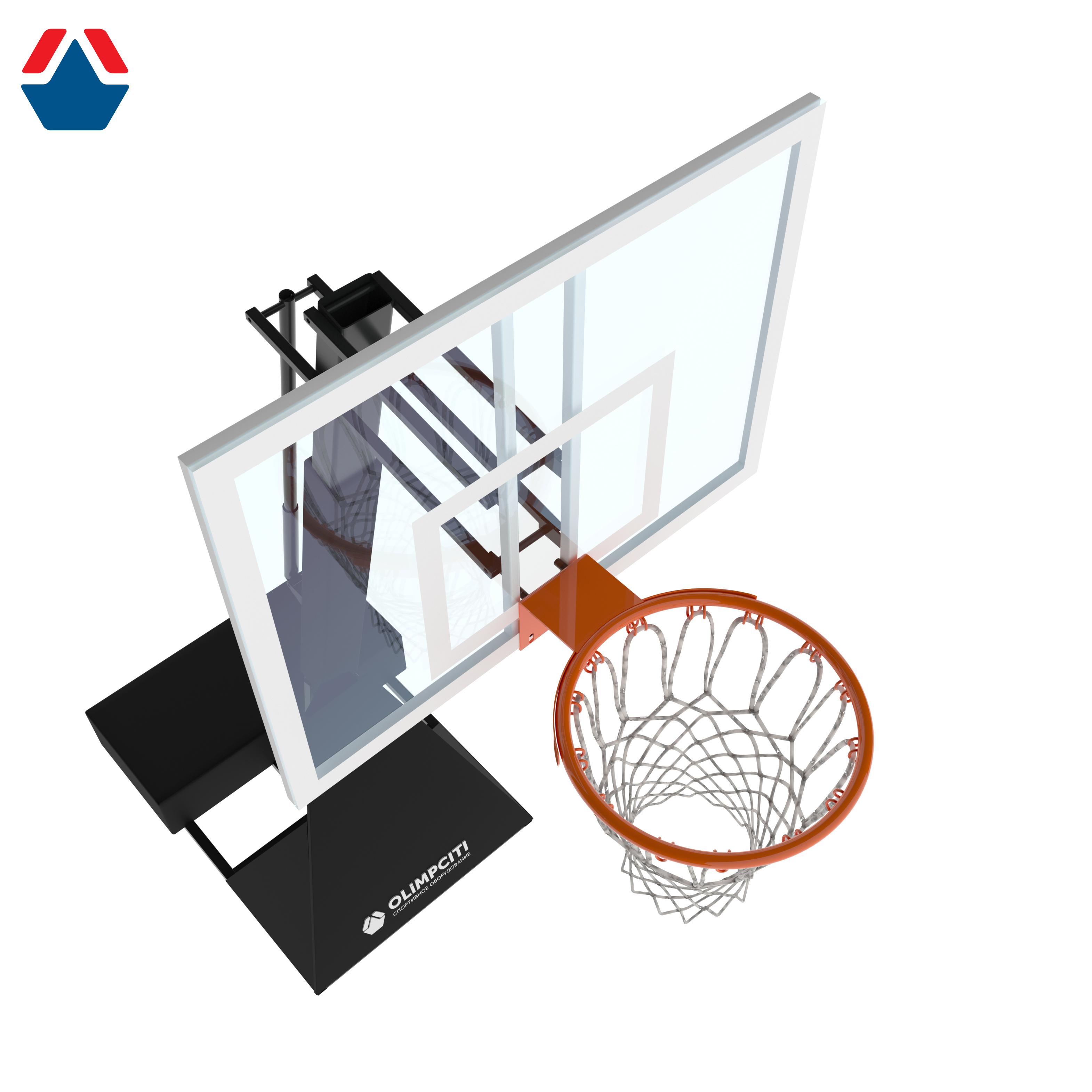 Стойка баскетбольная (под противовес) с винтовым механизмом регулировки щита представляет собой сборно-разборную конструкцию. Стойка устанавливается на баскетбольных или стритбольных площадках, расположенных как на улице, так и в помещениях. Предназначена для эксплуатации в общественных местах и на частных территориях.