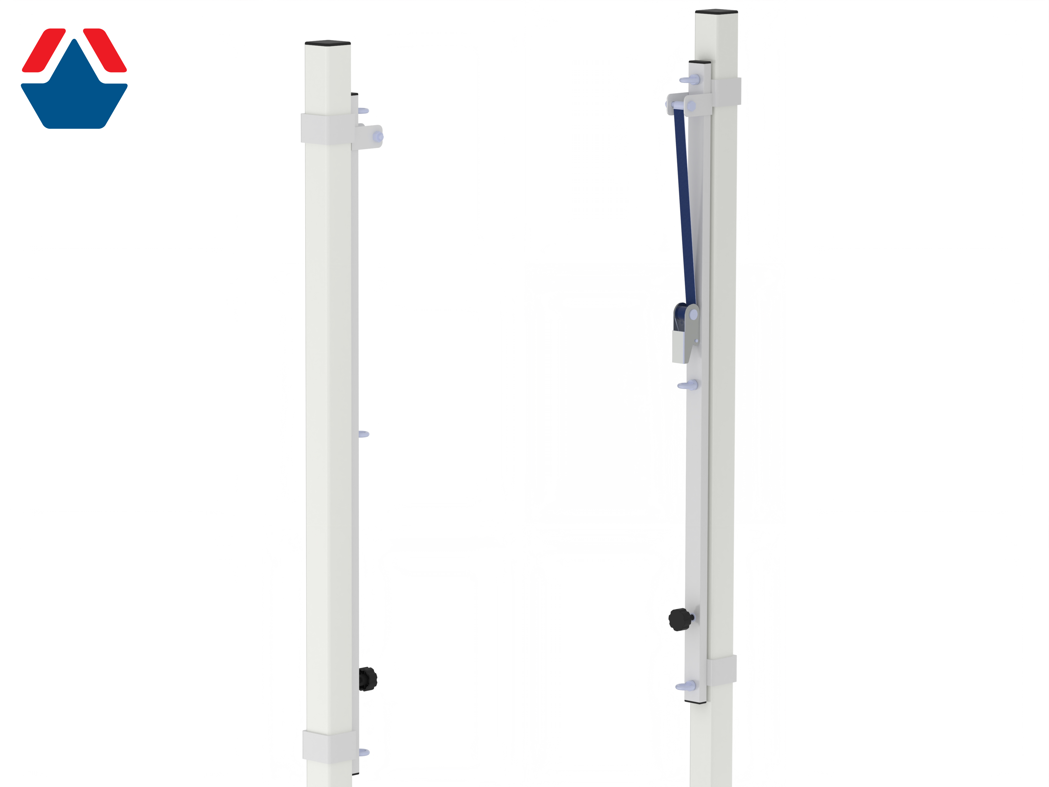 Стойки оборудованы системой натяжения троса. Регулируемая высота кареток позволяет применять стойки для игры как в волейбол,так и в бадминтон.